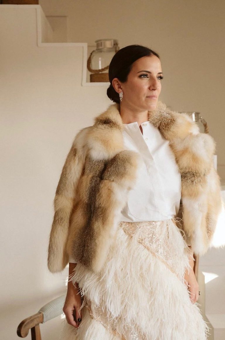 Nuestra clienta luciendo una espectacular chaqueta de cibelinas, una pieza llena de elegancia, sofisticación y carácter.