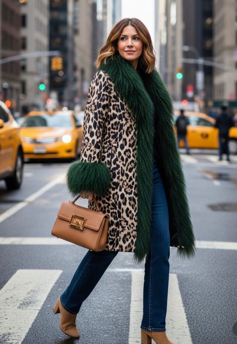 Gabardina en tela estampado leopardo, ribeteada con cordero tibetano que aporta volumen y un toque sofisticado. Una pieza atrevida y elegante, perfecta para un look con personalidad.