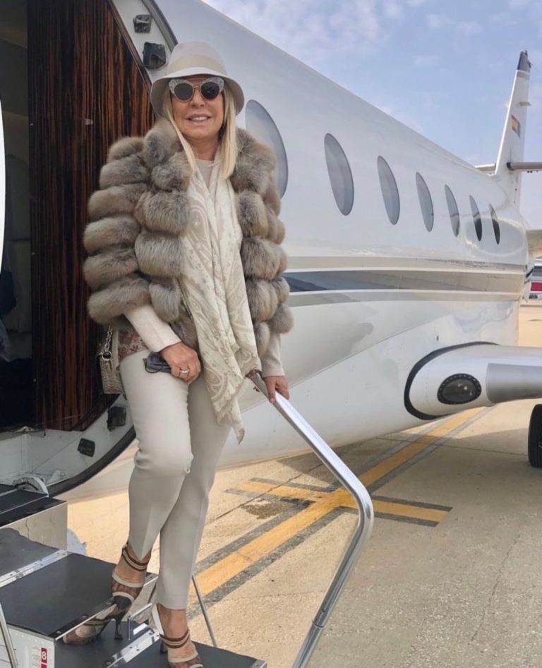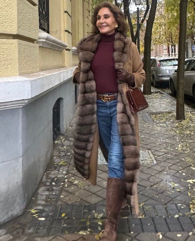 Nuestra queridísima Nati Abascal luciendo un elegante abrigo de cachemir con cibelinas, una combinación exquisita que refleja sofisticación, estilo y lujo atemporal