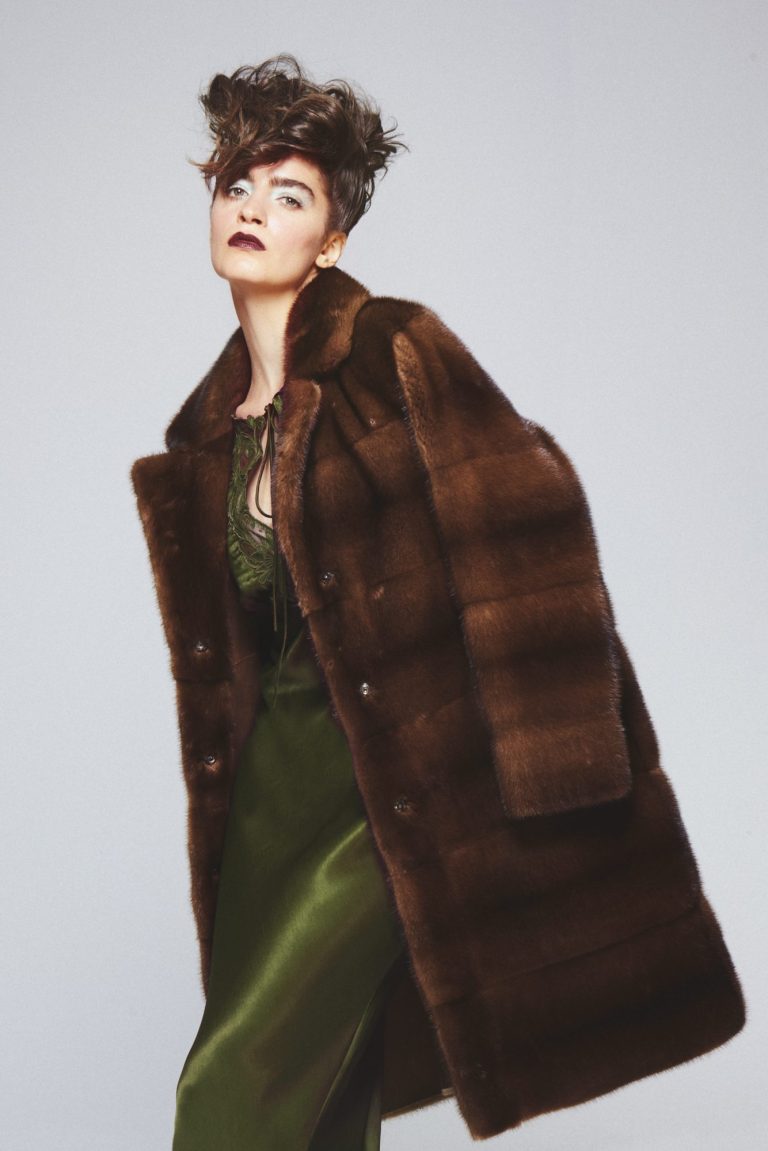 Imponente chaquetón confeccionado en visón salvaje canadiense, de gran suavidad, densidad y brillo natural. Una prenda cálida, lujosa y atemporal, perfecta para quienes buscan elegancia y distinción en invierno