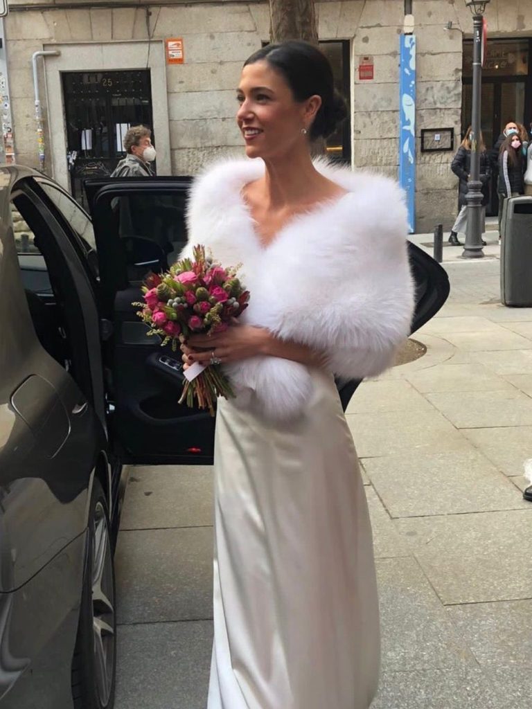 Chal de zorros árticos en blanco puro, perfecto para novias, que aporta suavidad, volumen y un toque de elegancia y sofisticación al look nupcial. Una pieza delicada y envolvente.